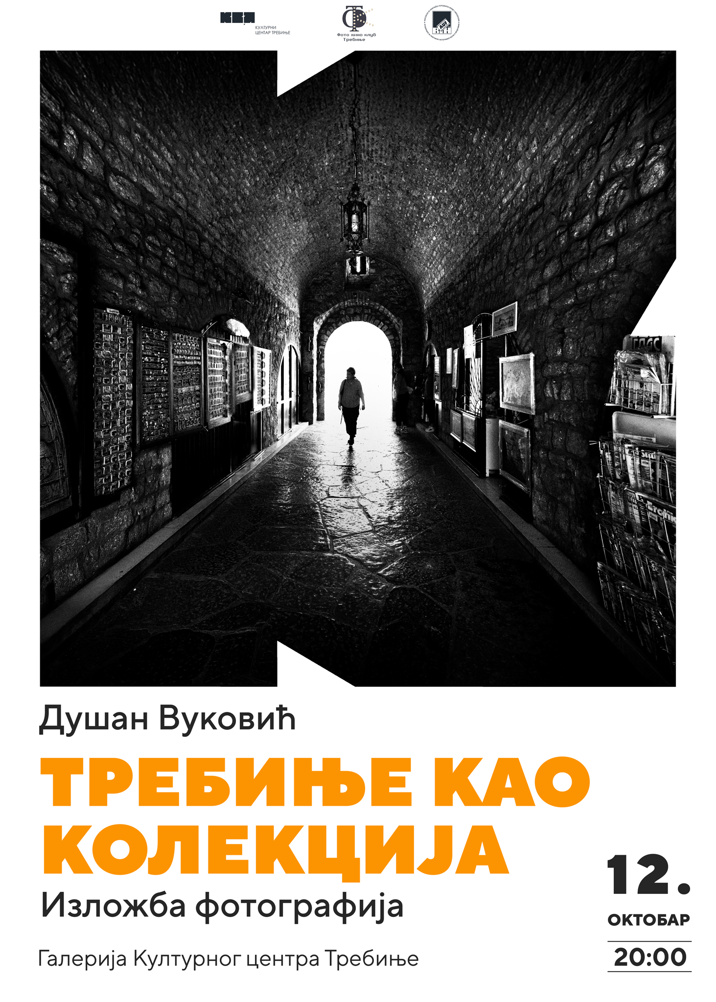 Pozivamo vas da prisustvujete otvaranju samostalne izložbe fotografija Dušana Vukovića pod nazivom “Trebinje kao kolekcija”, člana Foto kino kluba Trebinje. Izložba je postavljen au galeriji Kulturnog centra Trebinje, a otvaranje je 12. oktobra 2025. godine u 20,00 časova.