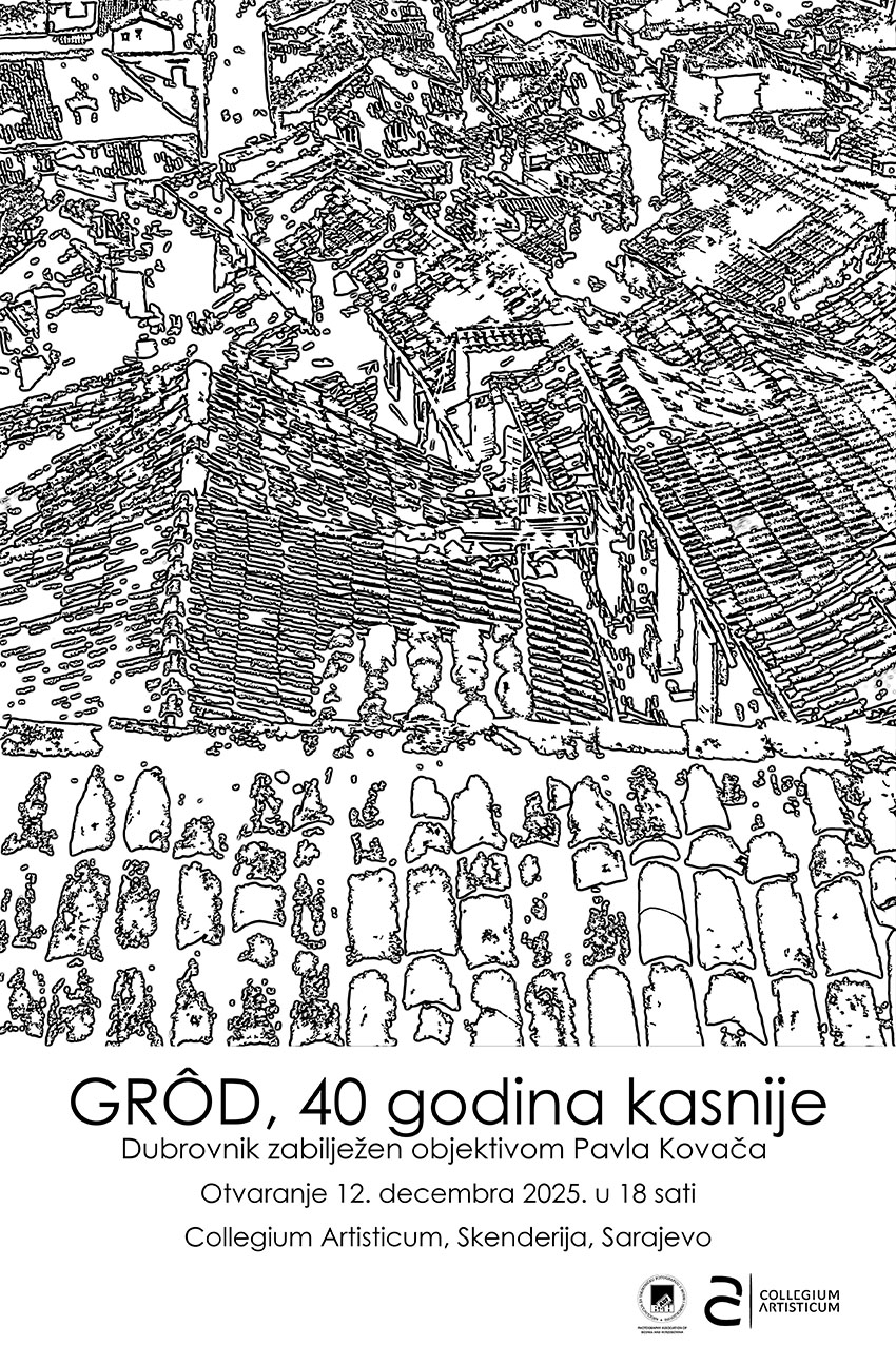 Pozivamo sve zainteresovane na otvaranje samostalne izložbe fotografija Pavla Kovača “GRÔD – 40 godina kasnije Dubrovnik, zabilježen objektivom Pavla Kovača. Izložba je postavljena u u Galeriji Collegium Artisticum Sarajevo, a otvaranje je u petak 12. decembra 2025. godine u 18,00 sati.