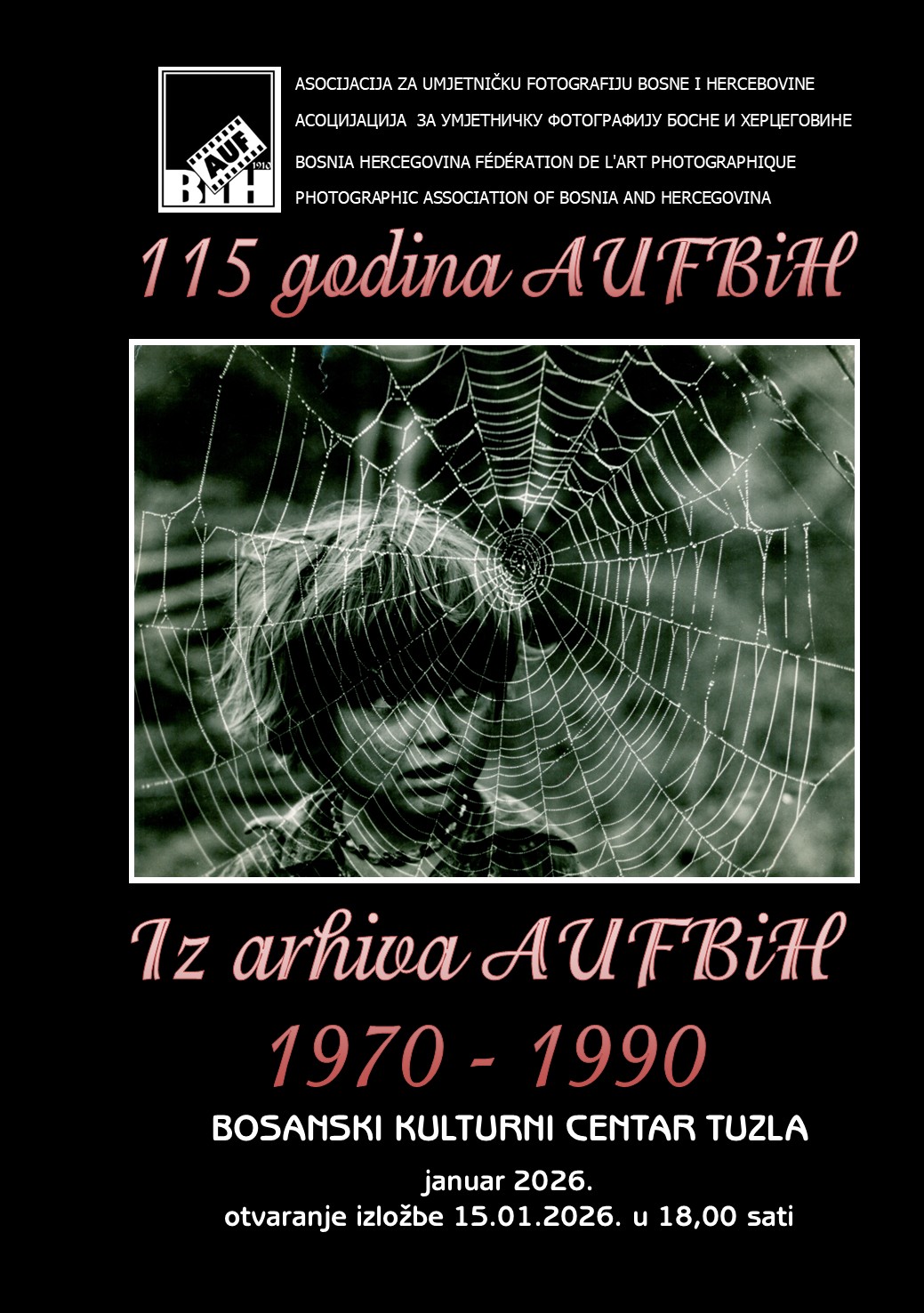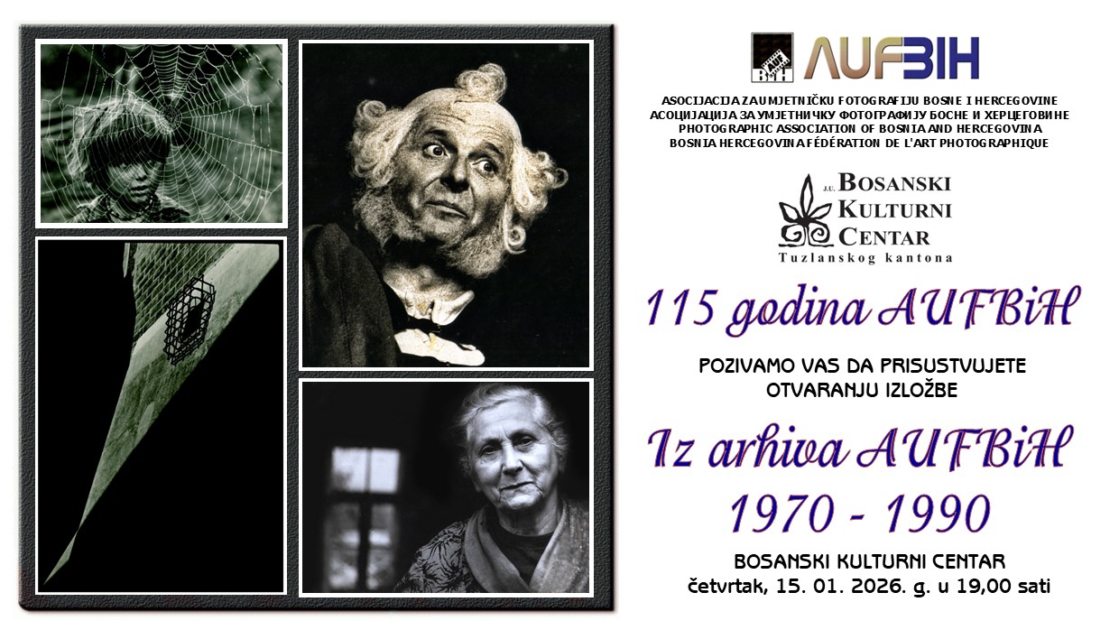 Pozivamo vas da prisustvujete otvaranju izložbe fotografija u povodu 115 godina AUFBiH pod nazivom Iz arhiva AUFBiH gdje su za izlaganje odabrane fotografije iz perioda 1970 – 1990 godina. Izložba je postavljen au BKC TK Tuzla, a otvaranje je predviđeno u četvrtak 15. januara 2026. godine u 19,00 sati.