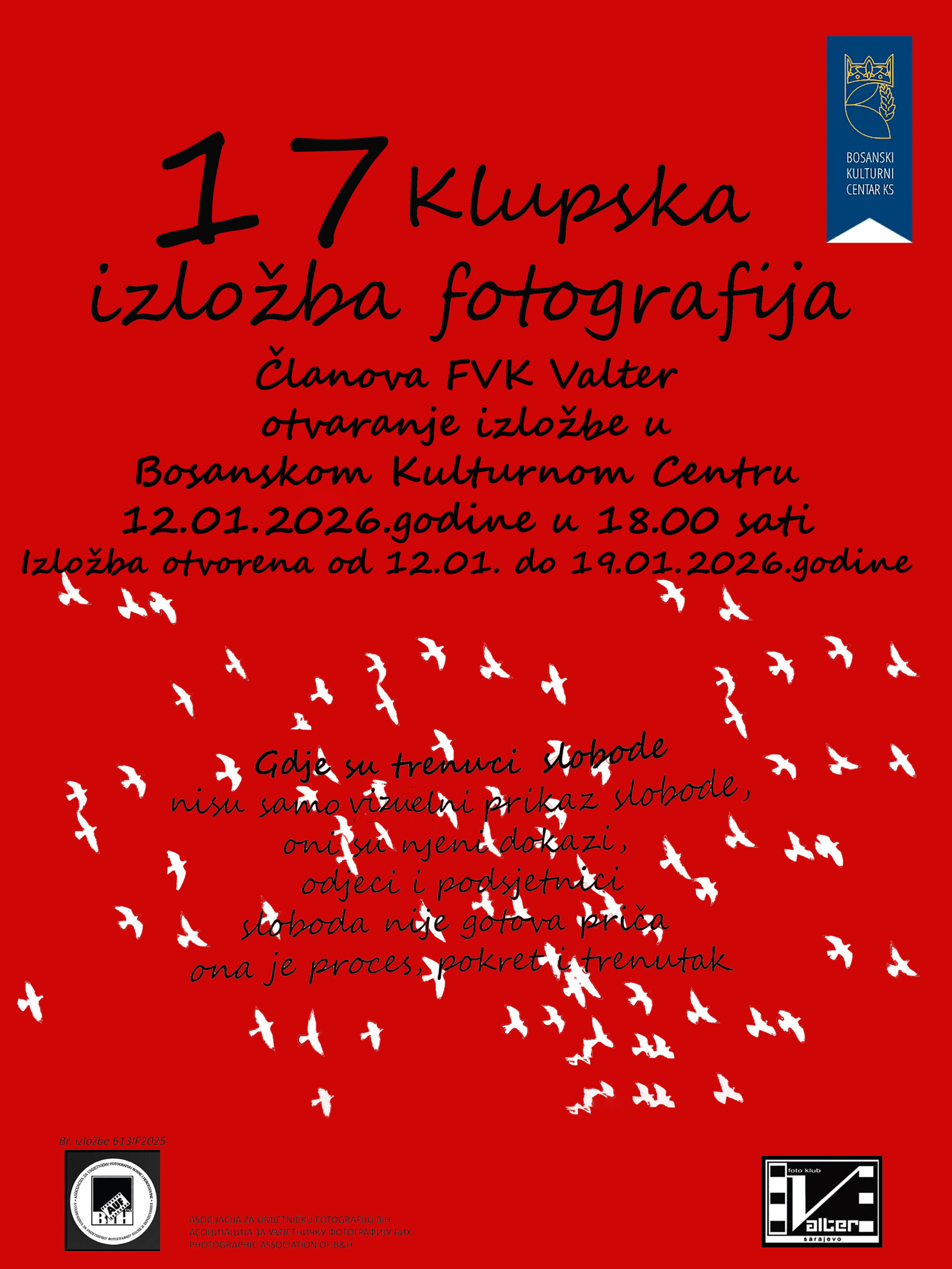 U ponedjeljak 12. januara 2026 godinew otvorena je 17. klupska izložba Foto video kluba Valter Sarajevo. Izložba je postavljena u Bosanskom kultrunom centru u Sarajevu i traje od 12.01. do 19.01.2026. godine.
